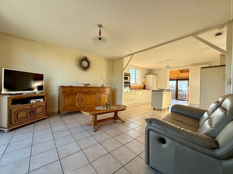 Salon ouvert sur la cuisine refaite en 2019 (nombreux rangements)