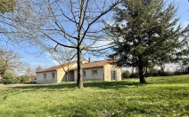 Entrée, salon, séjour avec cheminée, cuisine labo aménagée et WC. garage de 32 m2.
