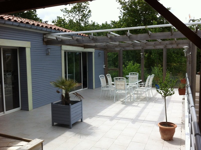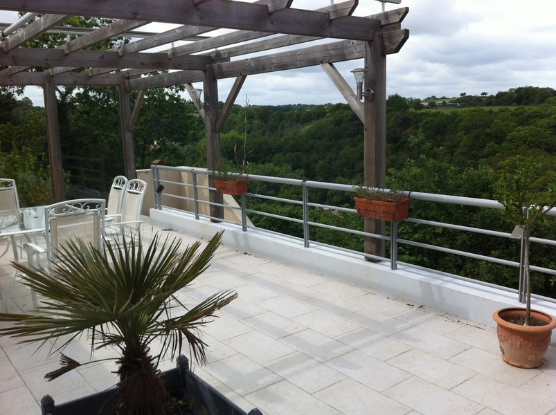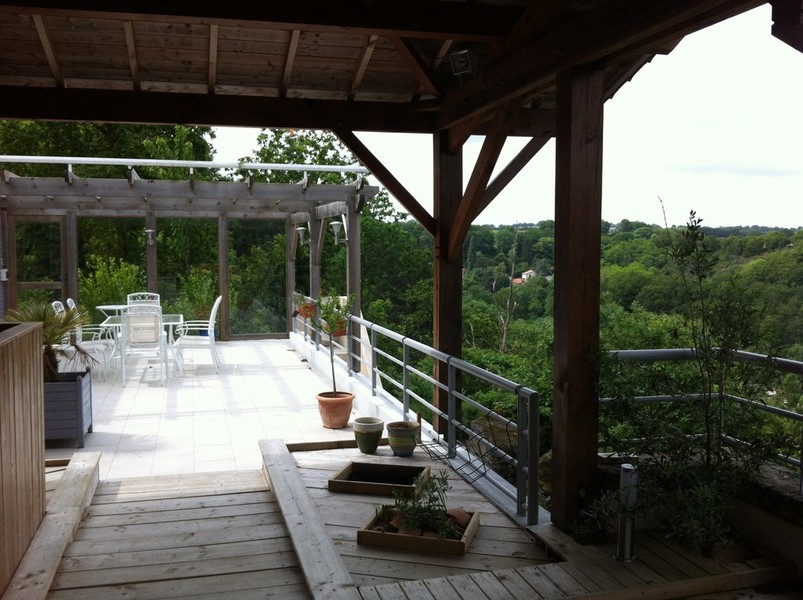 Une vue à couper le souffle. Très beau pavillon avec spacieux salon-séjour avec cheminée insert, accès direct sur la grande terrasse en partie couverte.